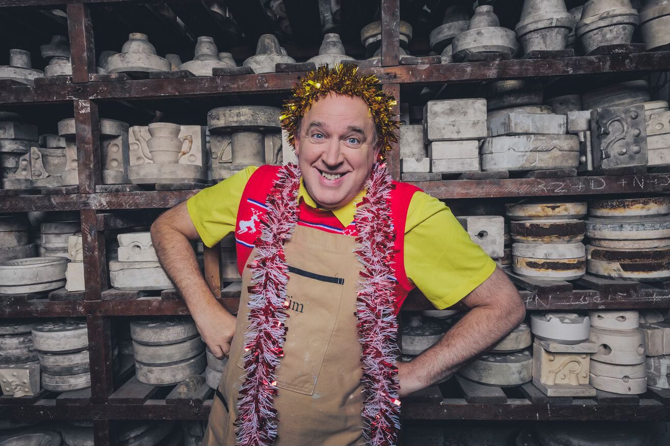 Sarah hopes seeing a bunch of amateurs starting from scratch and achieving something they’ll be proud to show off to visitors this festive season will prove inspiring. ‘Having a young child, I find they’re constantly being asked to do things they don’t really know how to do,’ she says. ‘And it’s really good to put yourself in that position as an adult – just to remember what it’s like and get engrossed in something you don’t really know. I got so into the painting. I was thinking: “Oh, I’m doing a lovely job. It’s only a matter of time before I’ve got a range out at John Lewis…” Then, suddenly, Siobhán said: “Potters, you’ve got three minutes.”And I thought: “Oh, I haven’t even touched my chocolate fountain!” It was all slap, dash, whack. I mean, it was like It’s a Knockout. I just remember running back and forth with glaze slopping everywhere. That felt like carnage. But the joy of doing something new!’